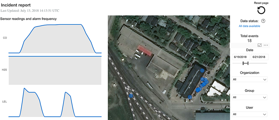 Este informe ayuda a los equipos a averiguar qué ocurrió durante un incidente específico que tuvo lugar en un momento concreto. El informe muestra las lecturas de gas durante el periodo de tiempo vinculado a las ubicaciones en un mapa, lo que facilita la comparación y la visualización del suceso. Aunque este informe ayuda a investigar un incidente para una sola persona, se pueden añadir otros compañeros de equipo al filtro, lo que ayuda a establecer el orden de los sucesos que ocurrieron durante el incidente y si estaban relacionados entre sí o no.